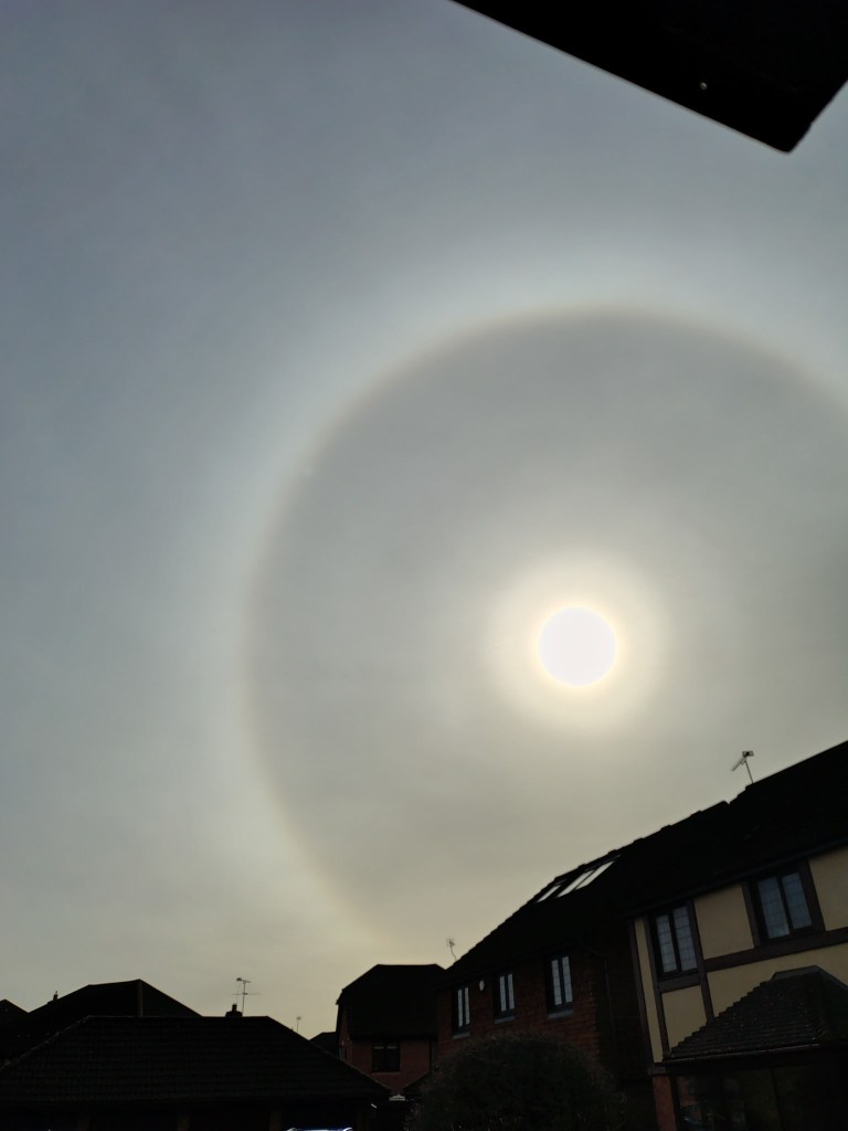 This halo appeared around the sun last Tuesday morning when we were facing a difficult family issue. It was as if God was saying, ‘Don’t worry, I am with you in the pain’. It has helped to turn the day into a beautiful memory. Thanks be to God. Howard G