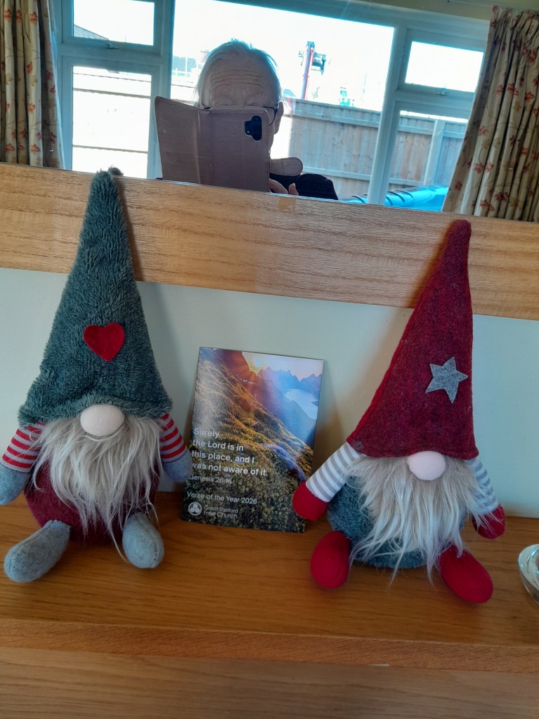 Guess what? Genesis 28.16 is our verse for the year at Great Shelford Free Church. Since our Lord is EVERYWHERE, why should he not grace our mantelpiece, between 2 felt friends?! Denise B