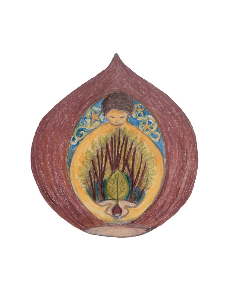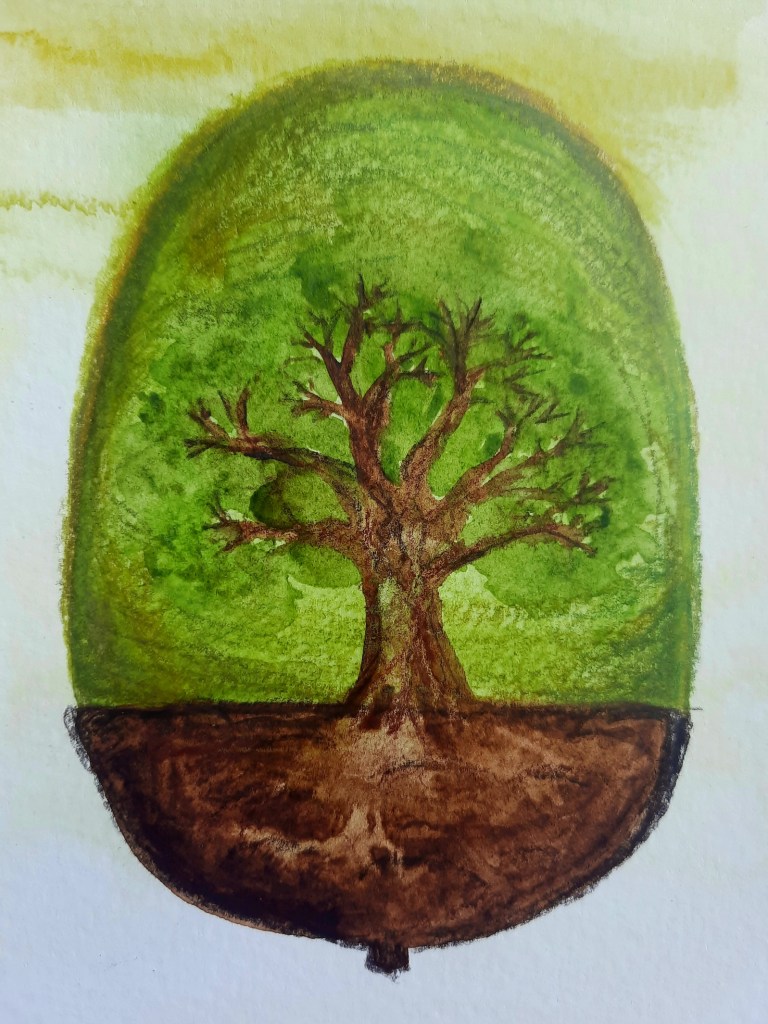Two images – a new one for the oakness in the acorn and an older one created last year resonating with the same theme inspired by Julian of Norwich and her vision of the hazelnut.