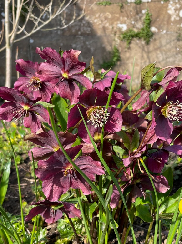 Being here… a Lenten rose and spring sunshine at Belsay Hall
